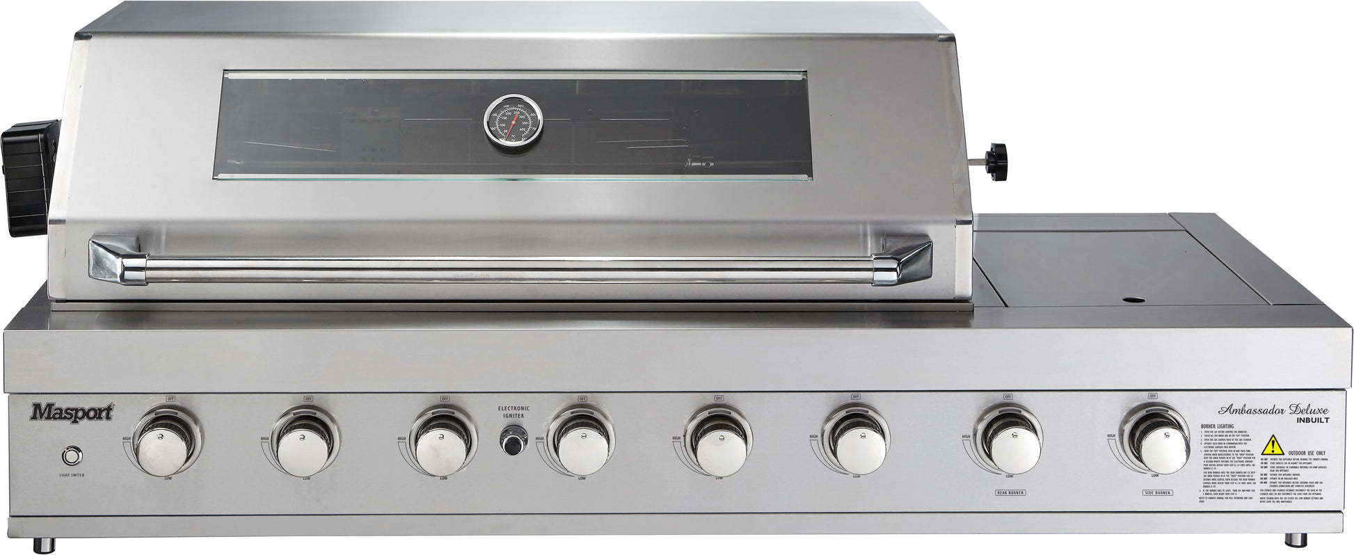 The Ambassador Deluxe IB is our larger flagship inbuilt BBQ. Constructed from premium 304 stainless steel with heavy duty main burners and a versatile rear burner. Together with its clean and slick lines it offers both aesthetic design and functionality all in one.