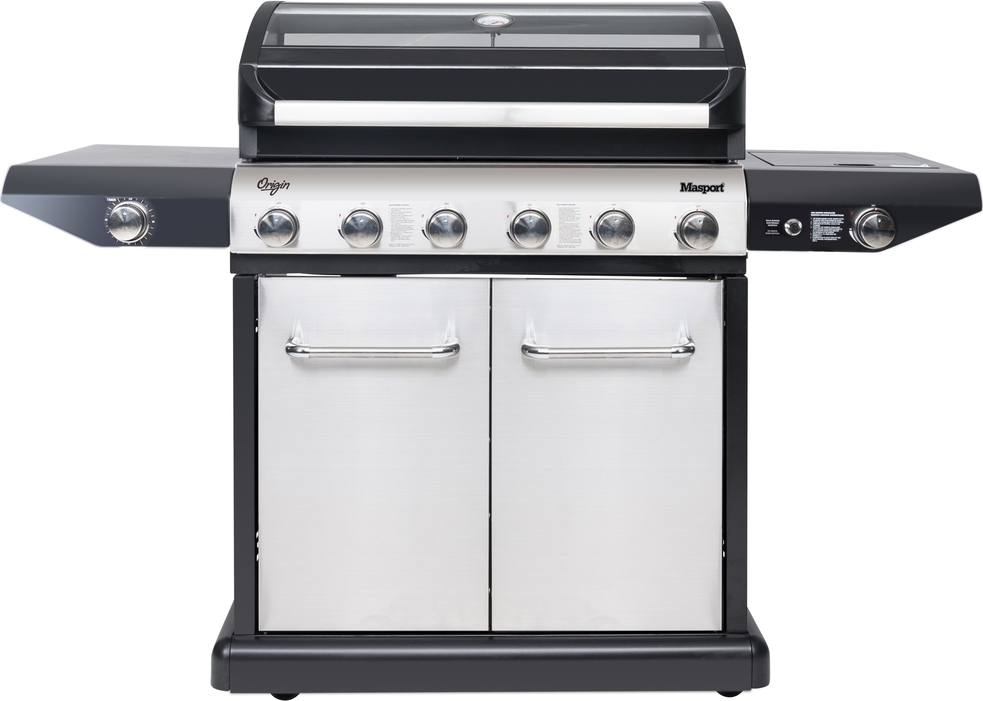 The Masport Origin barbecue will provide you with a six burner design finished in classy black with vitreous enamel hood and grill body. It features an extra large viewing window with a 304 stainless steel front dash and doors.