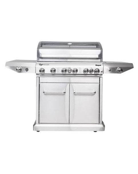 This impressive BBQ is constructed in 304 stainless steel and features a rear infrared burner for direct cooking. This barbeque also features an extra-large glass window and twin grill lights providing a clear view inside reducing the temptation to have a sneaky look under the hood.