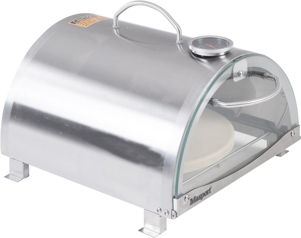 Now you can enjoy fresh gourmet pizza in minutes with the Masport Side Burner Pizza Oven. Designed to fit most BBQ side burners, this portable stainless steel pizza oven comes complete with a round pizza stone, temperature gauge and a tempered glass door which allows for easy monitoring of your cooking.