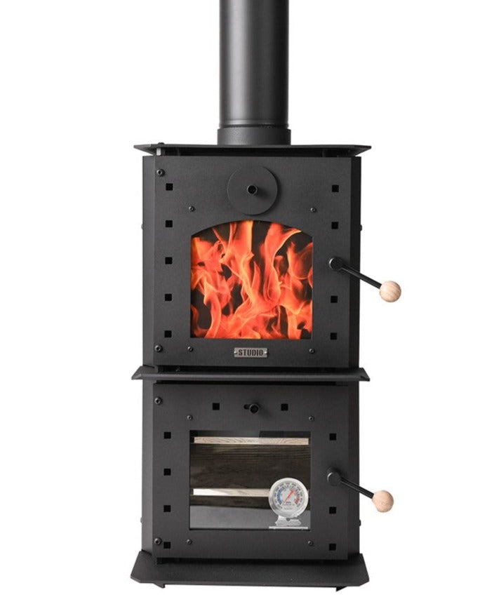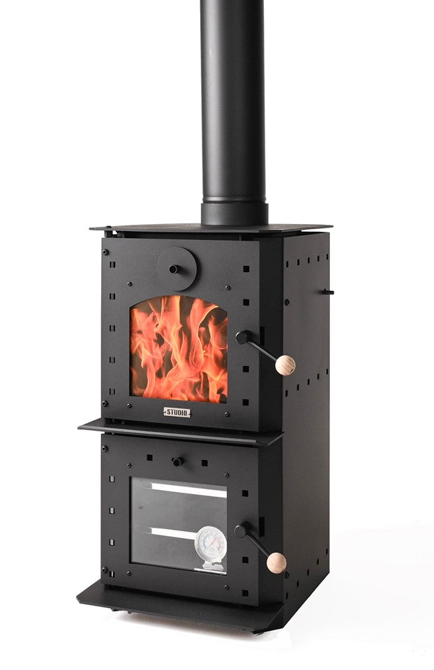 The STUDIO Oven was designed by Peter Haythornthwaite and is the perfect companion in both contemporary and traditional interiors. With a very high heat output and the bonus of a integrated oven, it will give you endless cooking opportunities using wood as fuel. Its simple, space saving and versatitle.