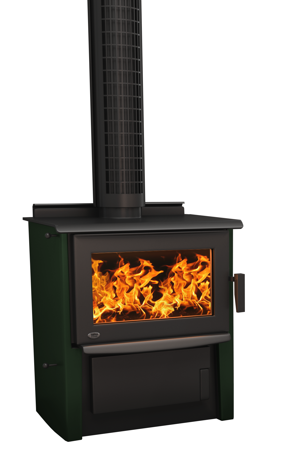 A fresh modern European style design combined with a convenient cook top and the ability to burn wood, coal, lignite, or a combination of all three.